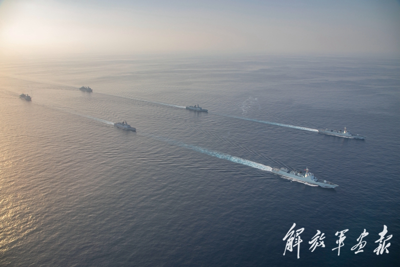 當(dāng)?shù)貢r(shí)間2025年1月1日上午,中國海軍第46、47批護(hù)航編隊(duì)于亞丁灣會合。(攝影/張大禹)