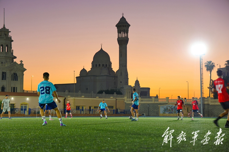 當(dāng)?shù)貢r(shí)間2024年8月18日,中埃海軍官兵共同開展足球友誼賽。(攝影/陳元增)