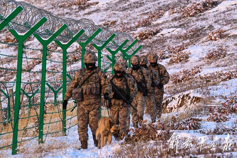春節(jié)前夕,沈陽(yáng)聯(lián)勤保障中心某哨所官兵執(zhí)行巡邏任務(wù)。(攝影/胥永政)
