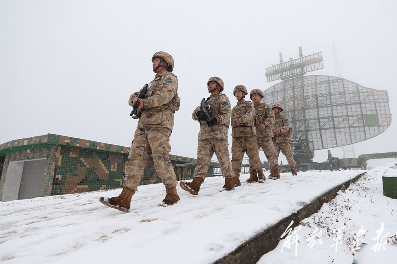 春節(jié)前夕,空軍某雷達(dá)站官兵開展陣地巡邏。(攝影/楊浩誠(chéng))