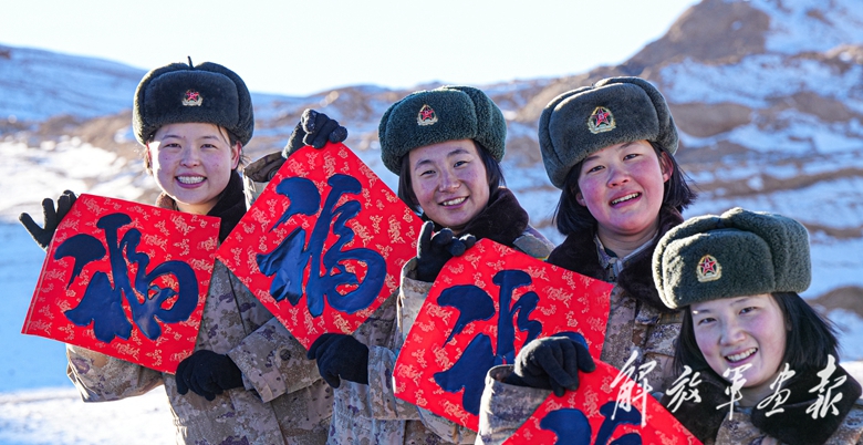 新疆軍區(qū)某團(tuán)官兵喜迎新春佳節(jié)。(攝影/段 潔)