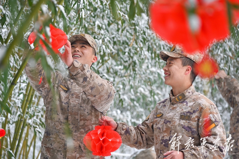 火箭軍某部官兵裝點(diǎn)哨所喜迎新春。(攝影/曹書麗雅)