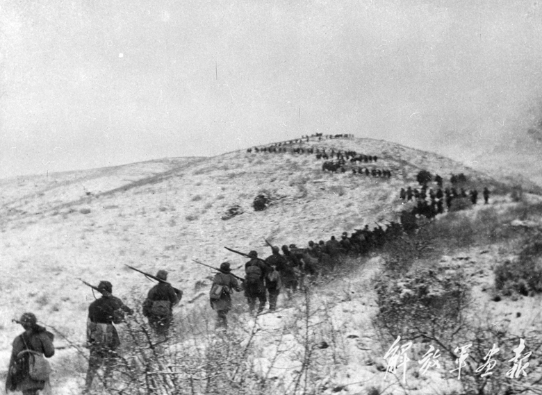 1947年8月,劉鄧大軍行進(jìn)在大別山北麓山區(qū)。(攝影/裴 植)