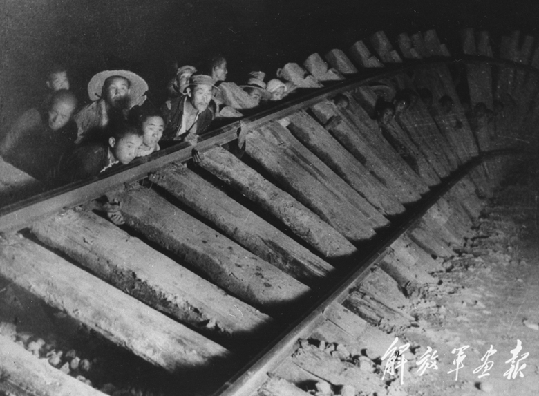 抗日戰(zhàn)爭勝利前夕,在部隊掩護(hù)下,支前民工在夜間破壞鐵路,切斷敵供應(yīng)線。(攝影/李 峰)