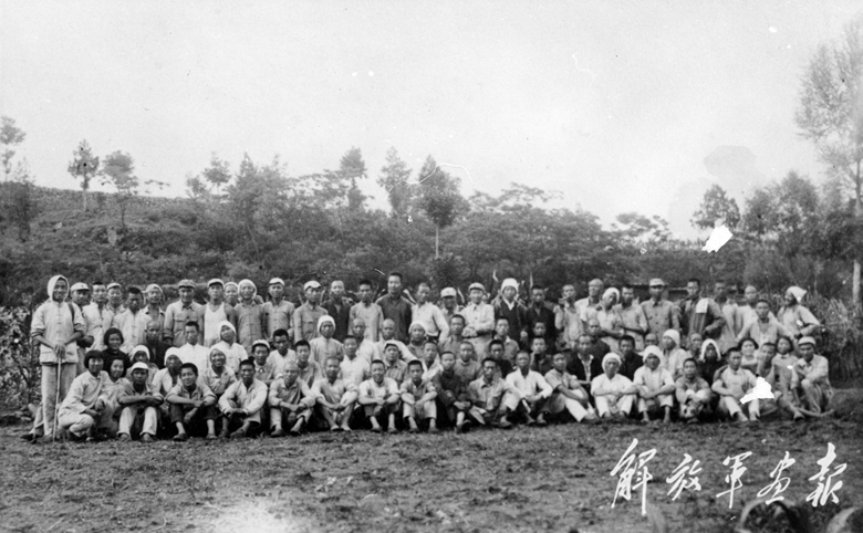 1943年4月,晉察冀畫報社部分成員在河北省阜平縣上莊合影。