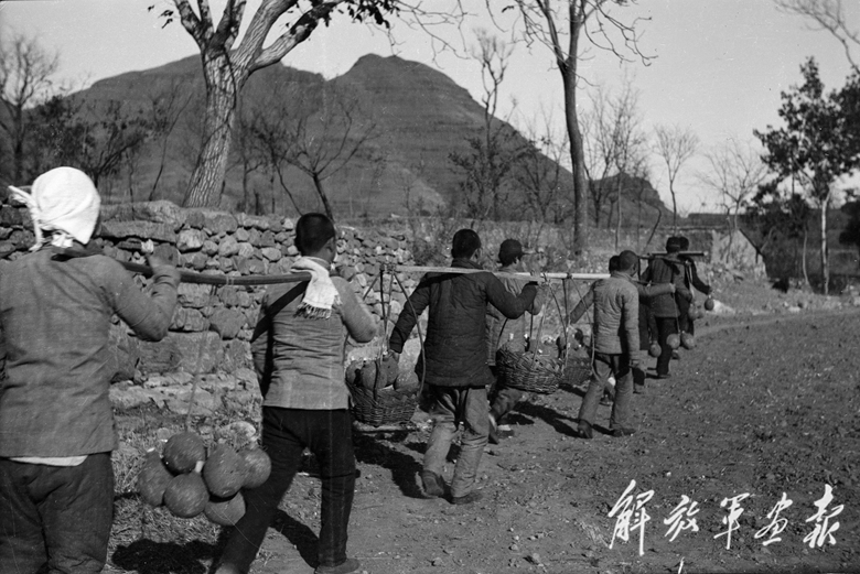 民兵把地雷送到埋雷區(qū)。(本刊資料室提供)