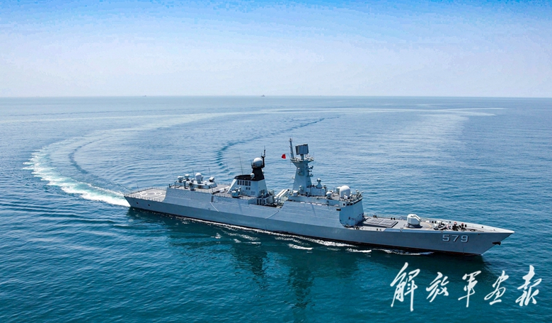 波光粼粼的海面上,海軍某驅(qū)逐艦支隊(duì)邯鄲艦快速向任務(wù)海域航渡。