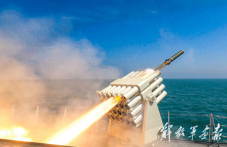 “右舷魚(yú)雷告警!”空中威脅剛剛解除,水下威脅接踵而至。官兵立即測(cè)算目標(biāo)運(yùn)動(dòng)要素,對(duì)其進(jìn)行鎖定,火箭深彈拖著長(zhǎng)長(zhǎng)的尾焰連續(xù)射出,成功擊毀來(lái)襲魚(yú)雷。