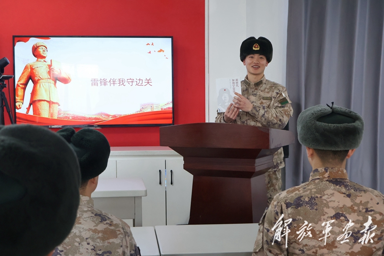 3月3日,新疆塔城軍分區(qū)某邊防團開展“雷鋒伴我守邊關(guān)”活動,激發(fā)官兵甘于奉獻(xiàn)、建功崗位的熱情。圖為戰(zhàn)士與戰(zhàn)友分享新時代學(xué)雷鋒的體會。(攝影/何文博)