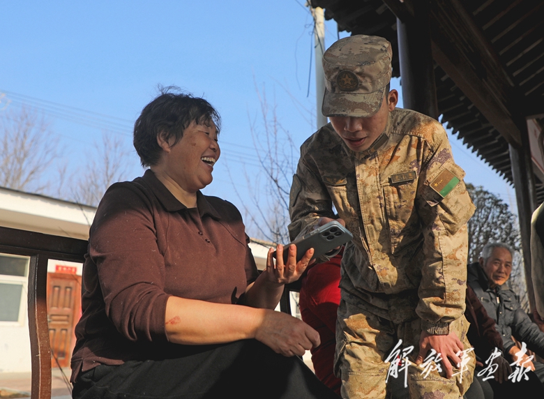 陸軍第83集團軍某旅組織官兵走進(jìn)駐地鄉(xiāng)村街道、敬老院,開展學(xué)雷鋒送溫暖活動。圖為戰(zhàn)士幫助社區(qū)留守老人講解手機使用知識。(攝影/曹 磊)