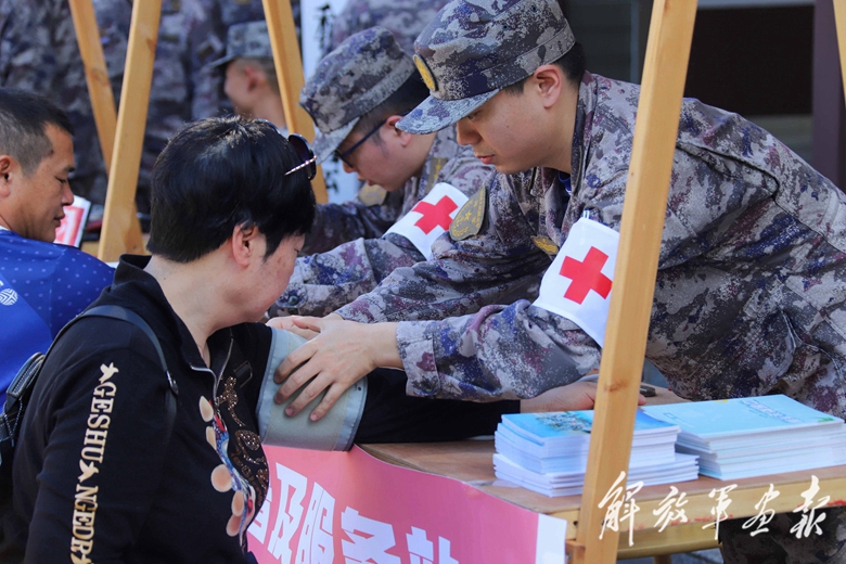 陸軍軍醫(yī)大學(xué)新橋醫(yī)院組織醫(yī)護人員為市民提供健康義診服務(wù)。(攝影/曾 理)