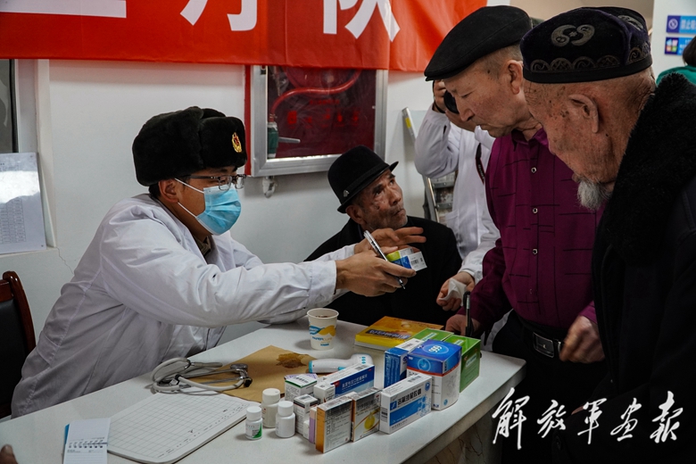 2月27日,陸軍某團官兵赴駐地鄉(xiāng)村開展義務(wù)巡診活動,為村民看病送藥。(攝影/司育琳)