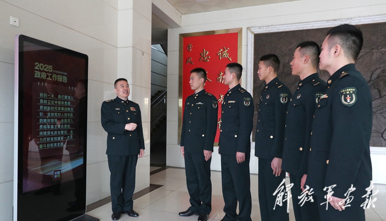 陸軍第73集團(tuán)軍某旅官兵開(kāi)展學(xué)習(xí)兩會(huì)精神活動(dòng),分享交流學(xué)習(xí)心得。(攝影/特約通訊員 劉志勇)