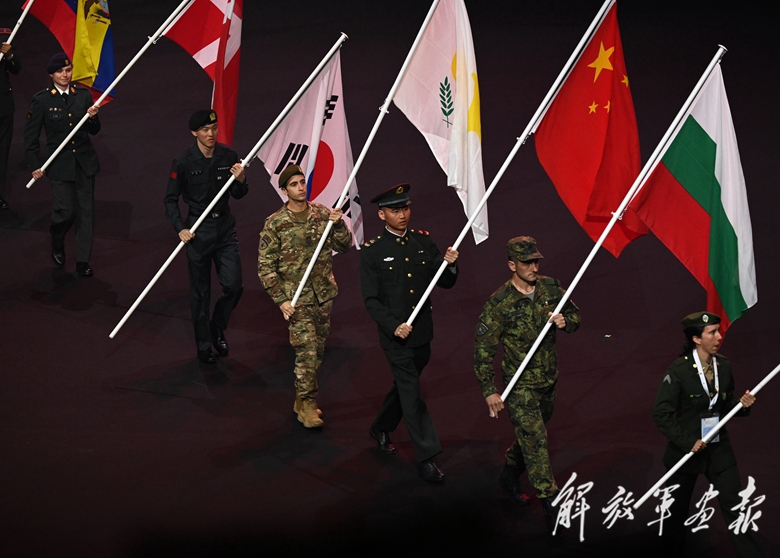 當?shù)貢r間3月29日,第五屆冬季世界軍人運動會閉幕式在瑞士盧塞恩舉行,我軍運動員耿有為(右三)持國旗入場。