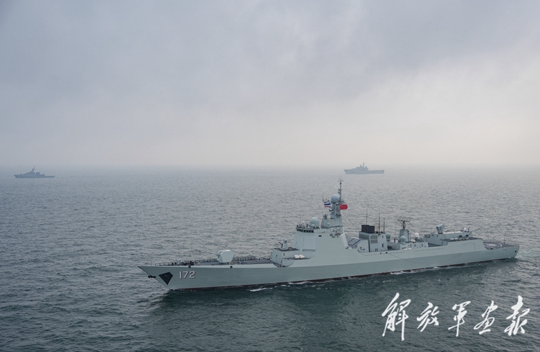 中泰雙方參訓(xùn)艦艇聯(lián)合編隊(duì)在航行中。(攝影/楊云翔 )
