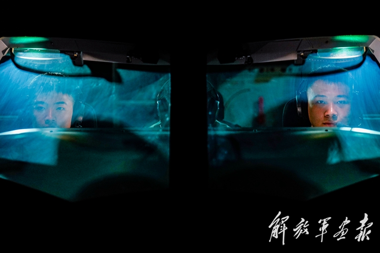 飛行前,機組成員進行地面模擬訓練。