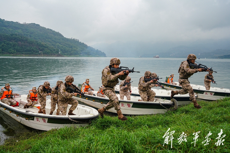 空中,無人機抵近偵察;陸上,機動分隊沿岸布控;水下,潛水員隱蔽滲透;水上,突擊組快速進入“被劫”游船……訓練中,各作戰(zhàn)單元密切協(xié)同,成功解救“人質(zhì)”。