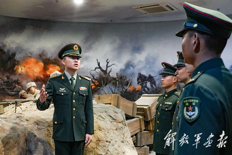 連隊(duì)干部在烈士紀(jì)念館為官兵講述82位烈士英勇戰(zhàn)斗的故事。