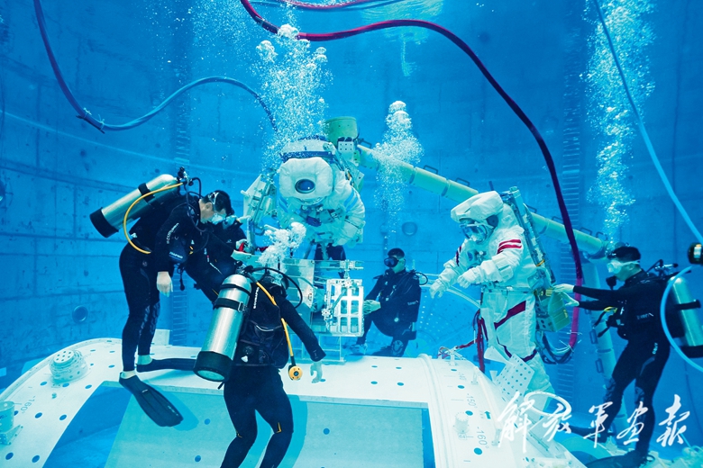 神舟二十號航天員進行水下訓(xùn)練。(攝影/徐 部)