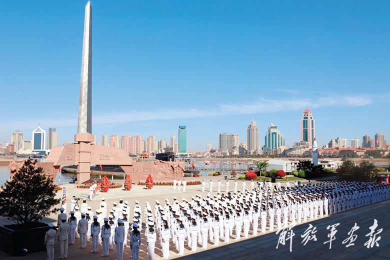 4月23日,海軍在青島海軍博物館英雄廣場(chǎng)舉行致敬人民海軍英雄儀式,緬懷英烈,致敬英雄。(攝影/石偉康)
