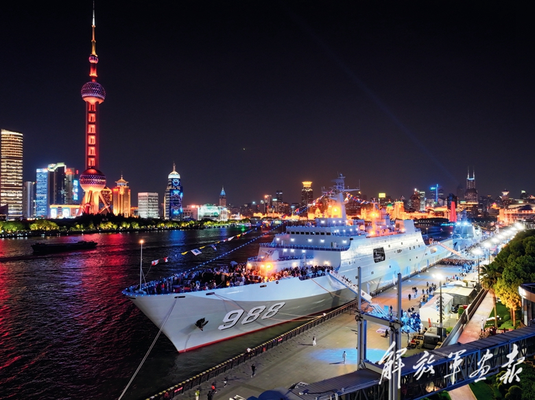 黃浦江畔,沂蒙山艦、西安艦靠泊上海港國(guó)際客運(yùn)中心碼頭,與地標(biāo)建筑東方明珠廣播電視塔同框出鏡。在以“上海.海上”為主題的艦艇開放活動(dòng)現(xiàn)場(chǎng),參觀者不僅登上艦艇近距離參觀人民海軍現(xiàn)代化武器裝備,還體驗(yàn)了繩結(jié)、旗語等海軍特色項(xiàng)目。