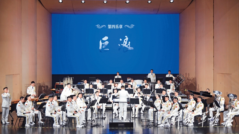 4月18日,海軍大型交響管樂音樂會(huì)《巨浪》在泰州大劇院舉行。(攝影/張?zhí)镆埃?/span>