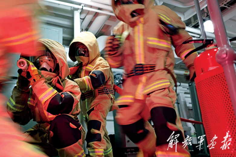 訓(xùn)練不避險(xiǎn),緊貼實(shí)戰(zhàn)練。編隊(duì)轉(zhuǎn)移機(jī)動(dòng)過程中,險(xiǎn)情特情依然接連不斷。 “機(jī)艙起火,迅速組織滅火!”損管隊(duì)員們迅速出動(dòng),找到“著火”部位,密切協(xié)同撲滅“火源”。