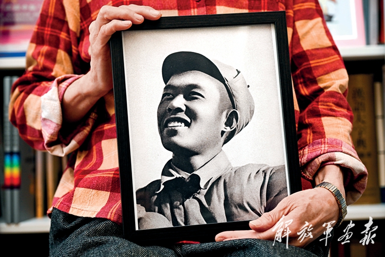 4月14日,在浙江省杭州市,雷燁的親人在家中手捧雷燁烈士抗戰(zhàn)時(shí)期的肖像照。