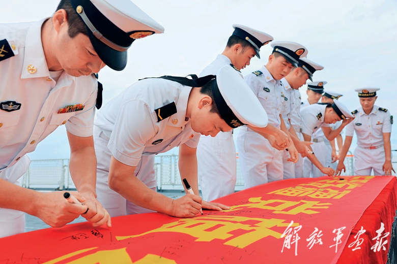 海軍某艦艇支隊(duì)組織官兵開(kāi)展主題簽名活動(dòng),表達(dá)忠誠(chéng)于黨、奮斗強(qiáng)軍的理想信念。(攝影/蔡盛秋)