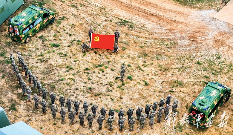 陸軍第81集團(tuán)軍某旅衛(wèi)生分隊(duì)在駐訓(xùn)期間舉行主題黨日活動(dòng)。(攝影/馬浩歌)