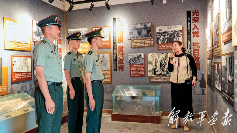 連隊(duì)榮譽(yù)室內(nèi),“青州連”官兵凝望戰(zhàn)旗,立志建功軍營。
