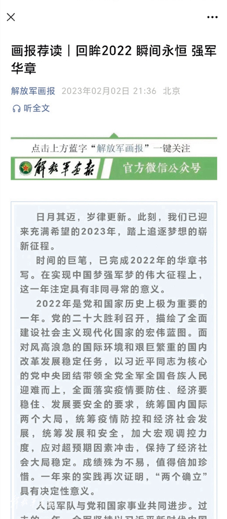 《回眸2022:瞬間永恒 強(qiáng)軍華章》(“解放軍畫報(bào)”官方微信公眾號2023年2月2日發(fā)布)