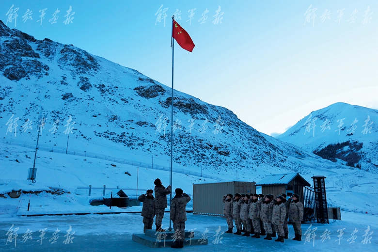 清晨,官兵在某執(zhí)勤點(diǎn)位升起國(guó)旗。