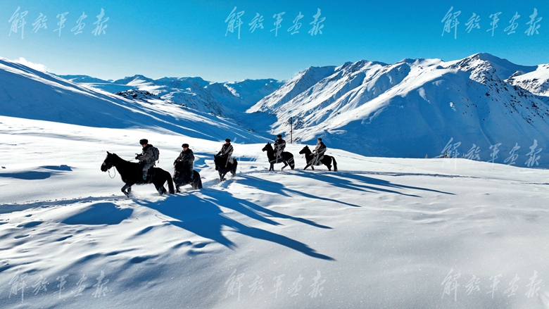 連隊(duì)官兵騎馬巡邏。