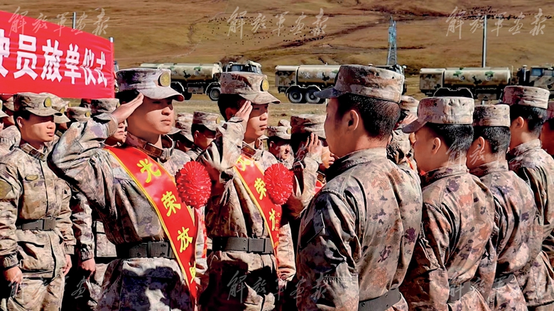 川藏高原,碧空萬里。寒風(fēng)中,西藏軍區(qū)川藏兵站部某分隊(duì)官兵整齊列隊(duì),舉行一場簡短而又莊重的新駕駛員放單儀式。