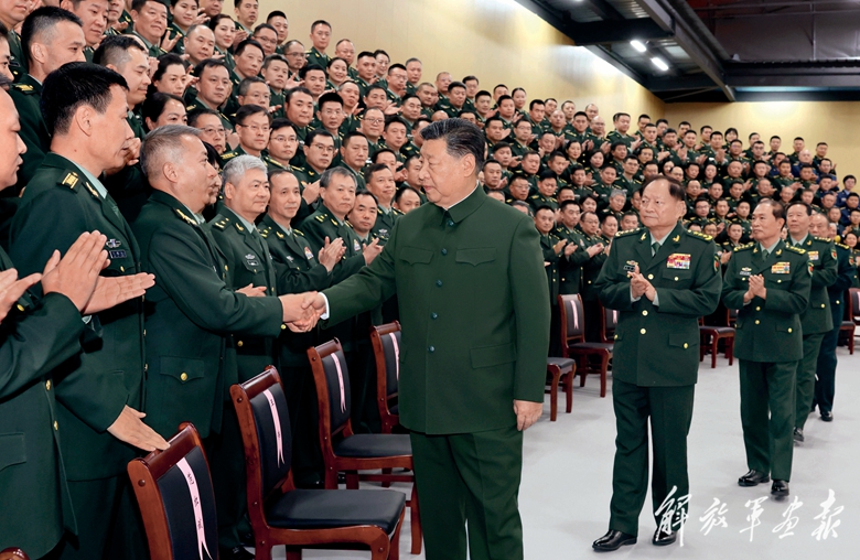 12月4日,中共中央總書(shū)記、國(guó)家主席、中央軍委主席習(xí)近平視察信息支援部隊(duì),代表黨中央和中央軍委,對(duì)信息支援部隊(duì)第一次黨代表大會(huì)的召開(kāi)表示熱烈祝賀,向信息支援部隊(duì)全體官兵致以誠(chéng)摯問(wèn)候。這是習(xí)近平同代表們親切握手。