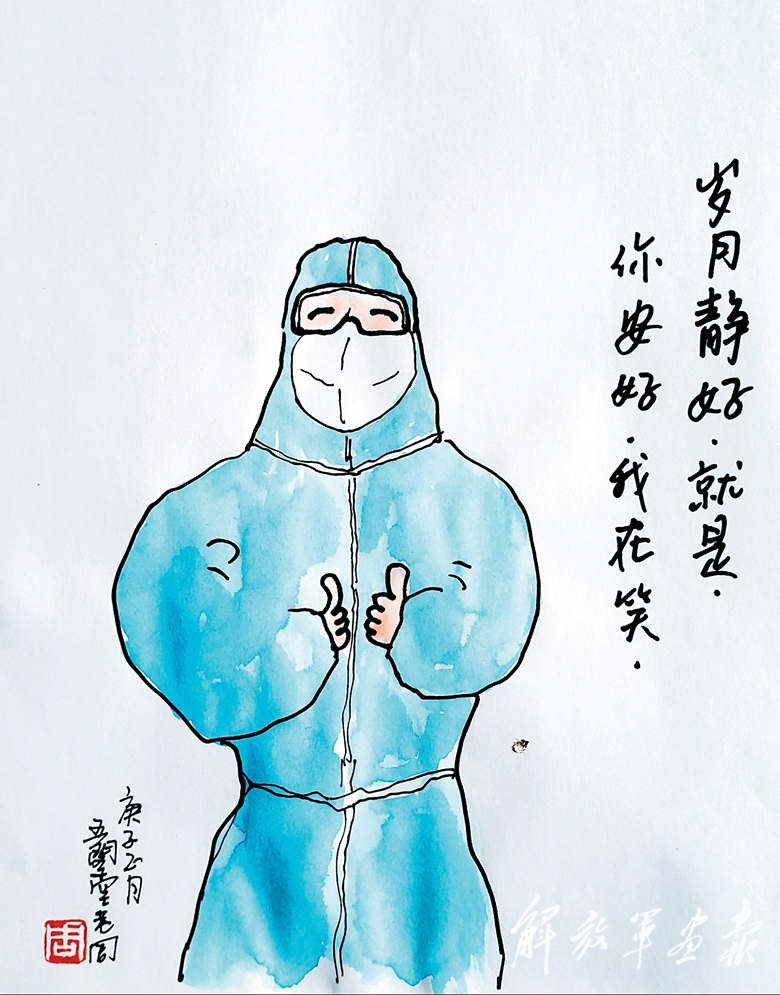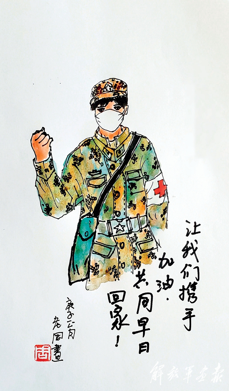 在工作中,蘇霞時(shí)時(shí)刻刻被身邊的溫暖故事感動(dòng)著,為全國人民眾志成城打贏疫情防控阻擊戰(zhàn)的決心而振奮。為了激勵(lì)患者,也為了給辛苦工作的醫(yī)療隊(duì)?wèi)?zhàn)友加油,她萌生了創(chuàng)作一組勵(lì)志漫畫的想法。通過電話和微信,她將創(chuàng)意告訴了擅長繪畫的戰(zhàn)友周樹林和自己的女兒張?zhí)K緣,并請他們進(jìn)行繪畫創(chuàng)作。這組通俗易懂、溫馨感人的漫畫創(chuàng)作完成后,被后方醫(yī)院印刷成精美的畫頁,并以最快的速度運(yùn)送到武漢抗擊疫情一線。