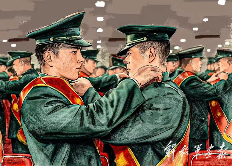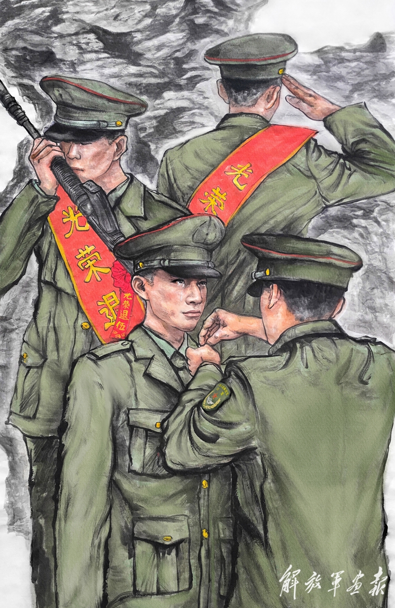 幫助戰(zhàn)友卸下軍銜(數(shù)碼彩繪) 作者/崔 琳