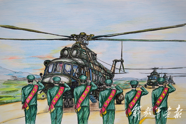 向戰(zhàn)機告別(彩鉛畫) 作者/周澤來