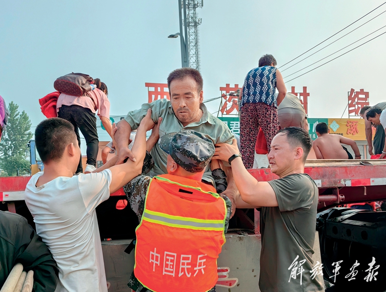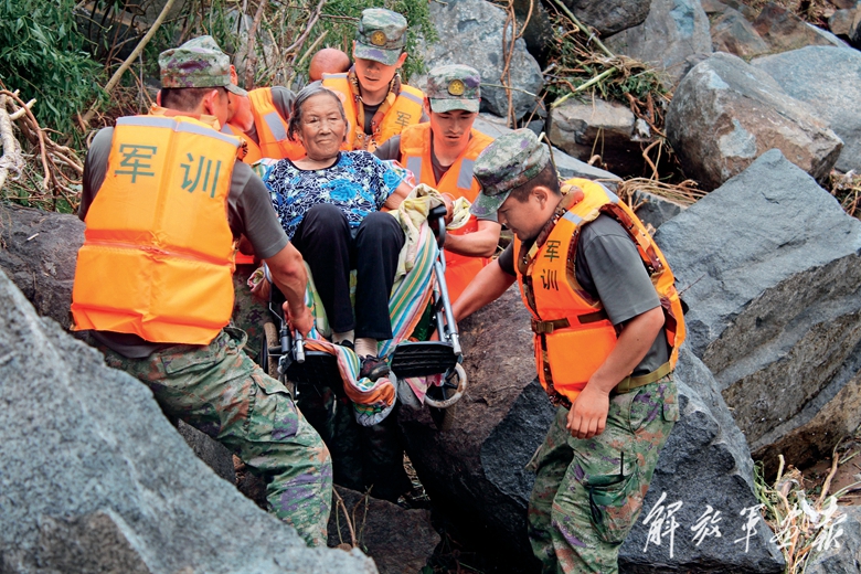 把虛弱的老人背上肩頭、把受驚嚇的孩子摟在懷中、把受傷的群眾抬上擔(dān)架……官兵們挨家挨戶搜救被困群眾,蹚著齊膝深的水將他們送到安全地域,當(dāng)天共搜救群眾151人、轉(zhuǎn)移群眾3100余人。一位老人緊握著戰(zhàn)士的手動(dòng)情地說:“見到解放軍,我們就安心了!”