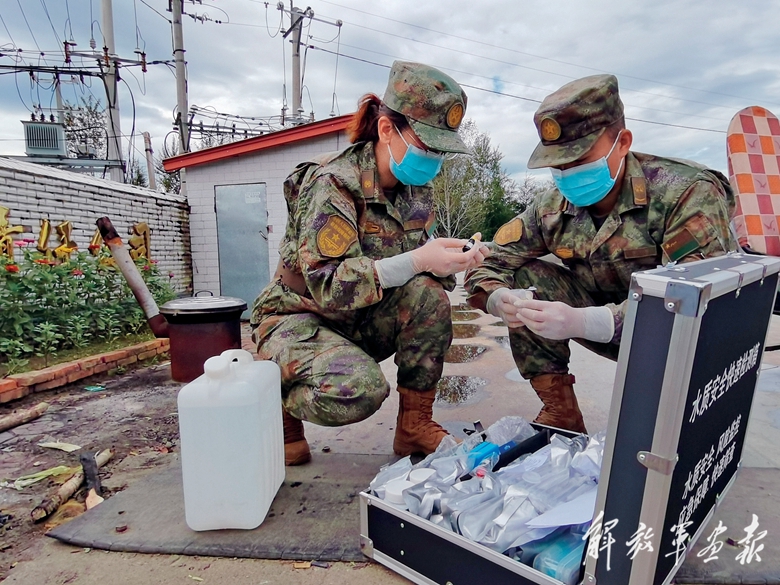8月12日,聯(lián)勤保障部隊(duì)第965醫(yī)院抗洪搶險(xiǎn)衛(wèi)勤保障分隊(duì)在吉林省舒蘭市臨時(shí)安置點(diǎn)檢測(cè)水源水質(zhì)。(攝影/特約記者 汪學(xué)潮)