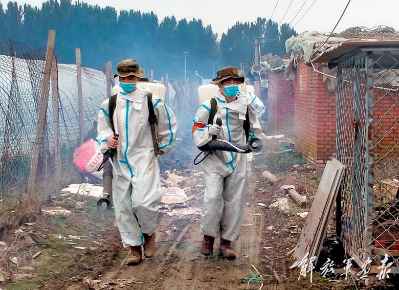 8月11日,北京衛(wèi)戍區(qū)某團(tuán)官兵對(duì)北京市房山區(qū)受災(zāi)村莊進(jìn)行防疫消殺作業(yè)。(攝影/李義樂)