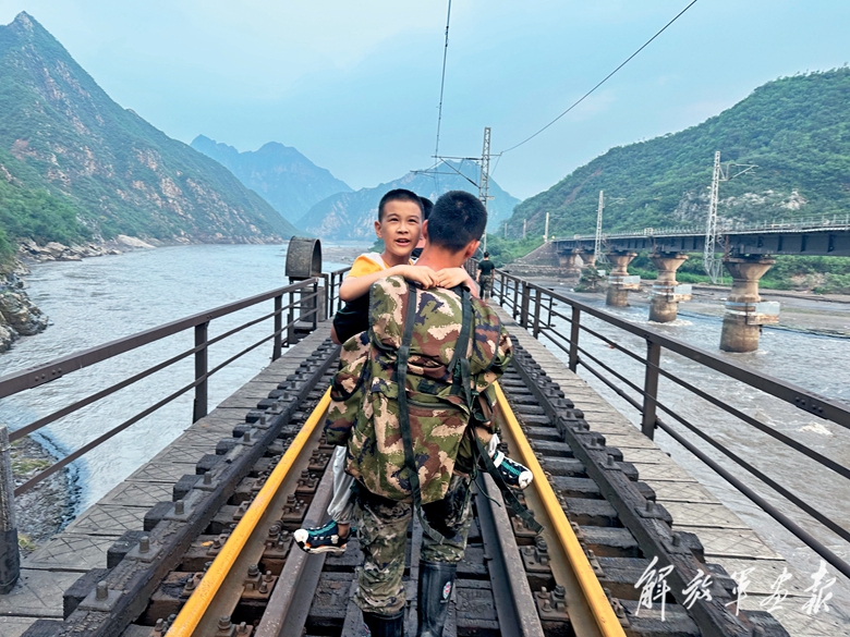 在北京市門頭溝區(qū),北京衛(wèi)戍區(qū)某部官兵奔襲15公里趕到齋堂鎮(zhèn)沿河口村,挽起褲腿、背上村民,在湍急的河水中一趟趟往返。