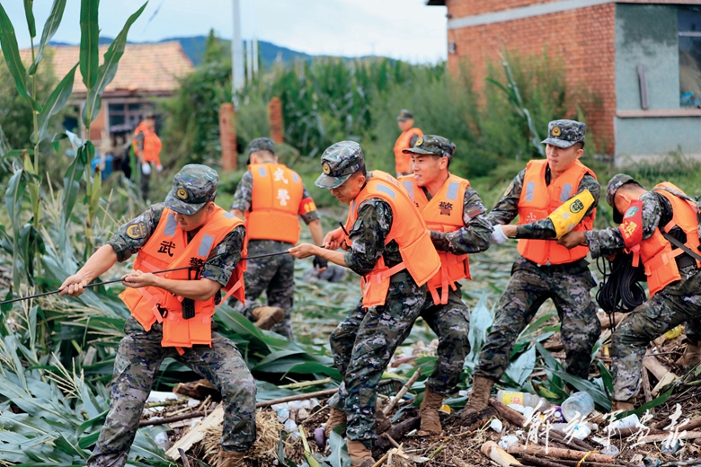 統(tǒng)帥心系人民、號(hào)令如山,人民軍隊(duì)聽令景從、勇?lián)厝?。解放軍和武警部?duì)官兵聞令而動(dòng),迅疾支援華北、東北防汛救災(zāi)工作,全力搜救失聯(lián)人員,緊急轉(zhuǎn)運(yùn)被困群眾,抓緊搶修受損道路,積極參與救治受傷人員,向黨和人民交出了一份合格答卷。