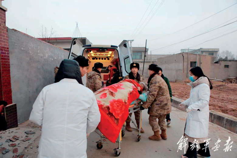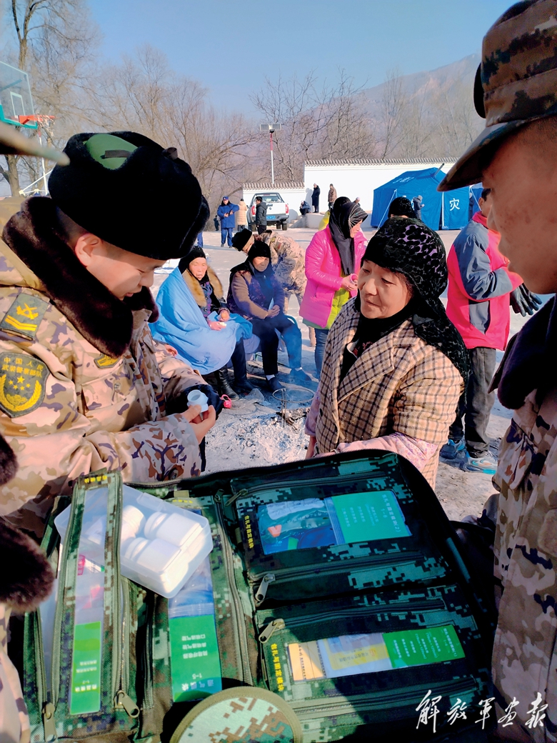 12月19日,武警甘肅總隊(duì)臨夏支隊(duì)官兵為受災(zāi)群眾送醫(yī)送藥。(攝影/許新強(qiáng))