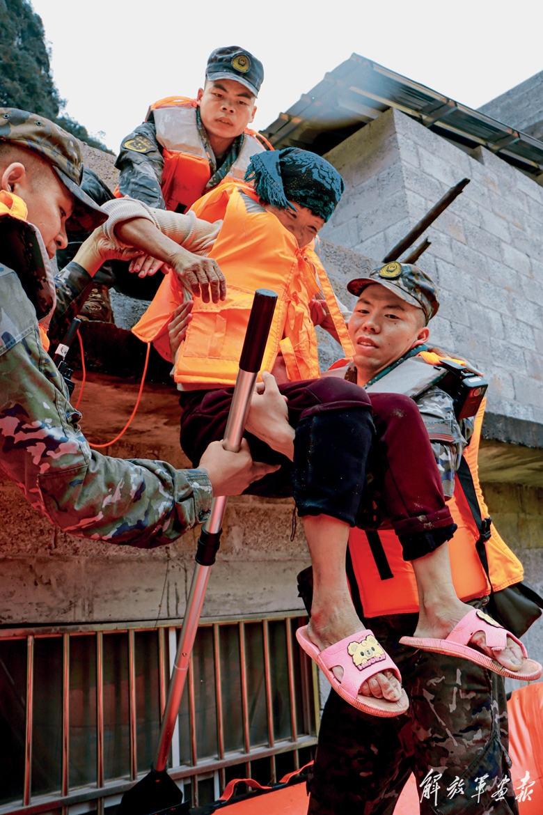 6月28日,武警貴州總隊(duì)官兵在黔東南苗族侗族自治州鎮(zhèn)遠(yuǎn)縣解救被困群眾。(攝影/劉煜鵬)