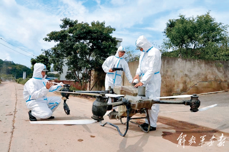 6月26日,廣東省平遠(yuǎn)縣人武部組織民兵利用無(wú)人機(jī)進(jìn)行防疫消殺。(攝影/曾 瑜)