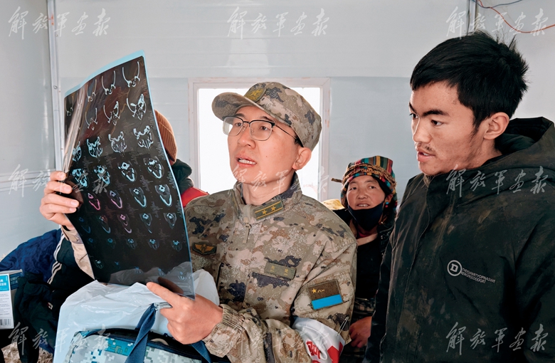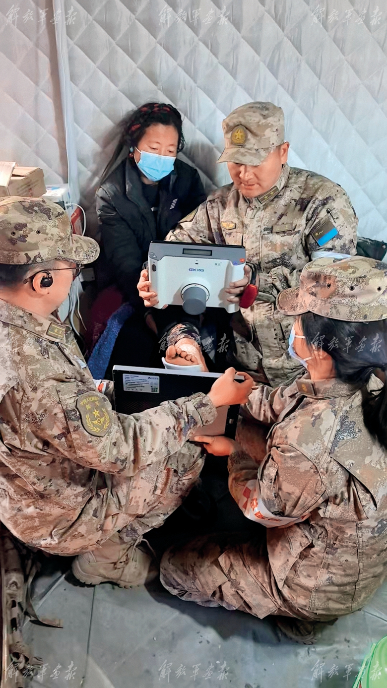 1月13日,西藏軍區(qū)總醫(yī)院醫(yī)護人員利用便攜相機式X射線機為群眾檢查傷情。(攝影/何義珂)