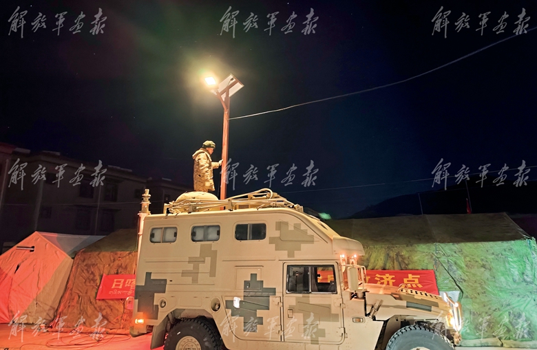 1月7日,地震發(fā)生后,西藏日喀則軍分區(qū)某部官兵開展救災工作。(攝影/王 乾)