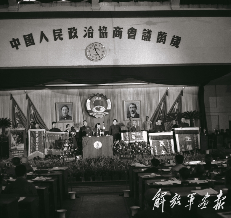 1949年9月21日,由中國共產(chǎn)黨發(fā)起召開的,有各民主黨派、各人民團(tuán)體、各地區(qū)、人民解放軍、各少數(shù)民族、國外僑胞和其他愛國分子的代表參加的中國人民政治協(xié)商會議第一次全體會議在北京隆重開幕。會議通過了具有臨時憲法作用的《共同綱領(lǐng)》和《中華人民共和國中央人民政府組織法》,并宣布中華人民共和國正式成立。